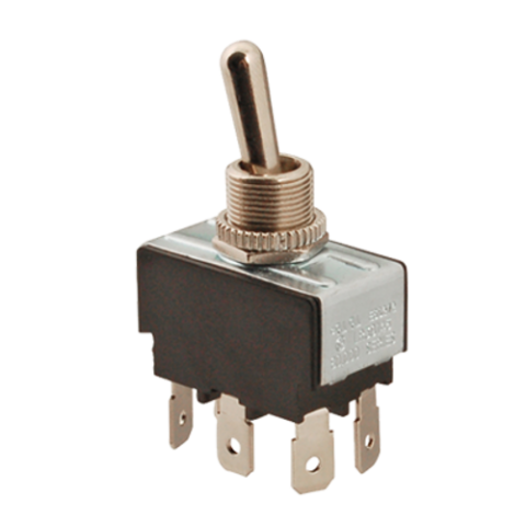 Toggle Switch, on/off/on, double pole, double throw, (6) 1/4" tab terminals