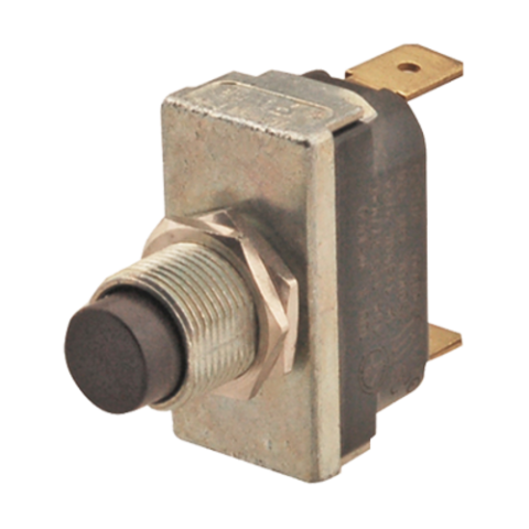 Push Button Switch, off/momentary on, 1/4" tab terminals, brown, plastic, 240v, 15 amp