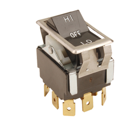 Switch, hi/off/lo, double pole, double throw, black