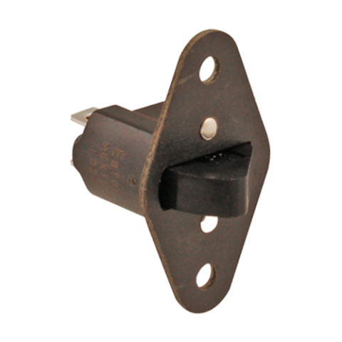 Plate Mount Switch, 9/16" plunger, momentary on/off, normally closed terminals, SPST, 120/250v, 0.25/0.75 amp