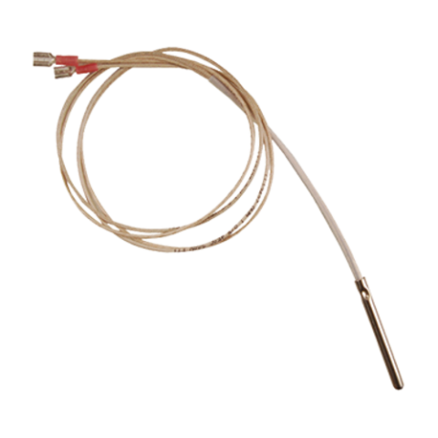 Temperature Probe, 37-1/4"L, 2-1/2" x 1/4" OD bulb, (2) 1/4" female spade connectors, fiberglass leads (#18, white), 100k OHM