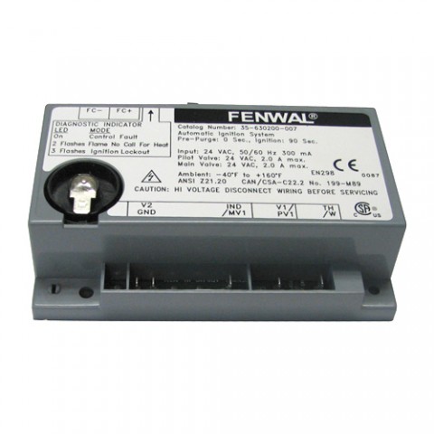 Ignition Module, 24 Vac, Pre-Purge 0 Sec, Ignition 90 Sec, 1/4" Spark Tab, Mfg Fenwal, Pitco