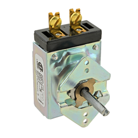 Thermostat, KM-type, 48" capillary, SPST, breaks at temperature rise, 250° F to 850° F temperature range, 1/8" x 8-7/8" bulb, 277v