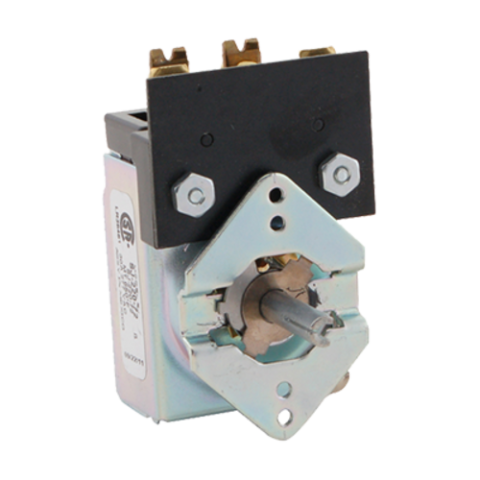 Thermostat, SJ-type, 72" capillary, SPST breaks at temperature rise with auxiliary switch, 275° F to 700° F temperature range, dial, 3/16"L x 11-3/4" OD bulb, 277v, 30 amp