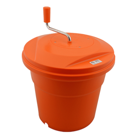 Dynamic® Salad Spinner, manual, 5 gallon capacity, 16" base, 17"W sealed lid, dries up to 8 heads of lettuce, plastic, orange, ETL