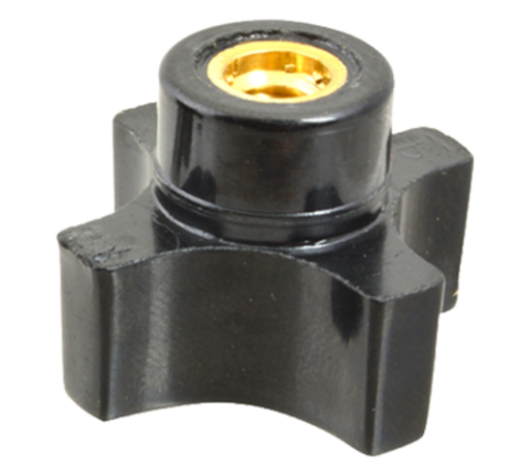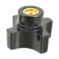 Female Knob, 1/4-20 thread, 4-prong, black, plastic