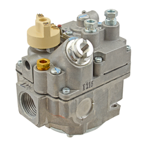 Robertshaw 700 Series Bleed Combination Valve, Natural Gas, for use with GS type thermostats, 3/4" NPT inlet & outlet, includes (2) 1/2" NPT adaptors, 1/4" OD tubing outlet for pilot, Thermocouple application, 300,000 BTU at 3/4" NPT