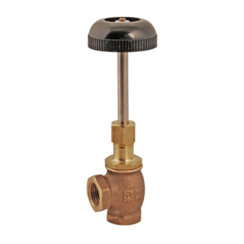 Angle Steam Valve, long handle, 1/2" NPT, rated 125 psi for steam, 200 psi for water, brass