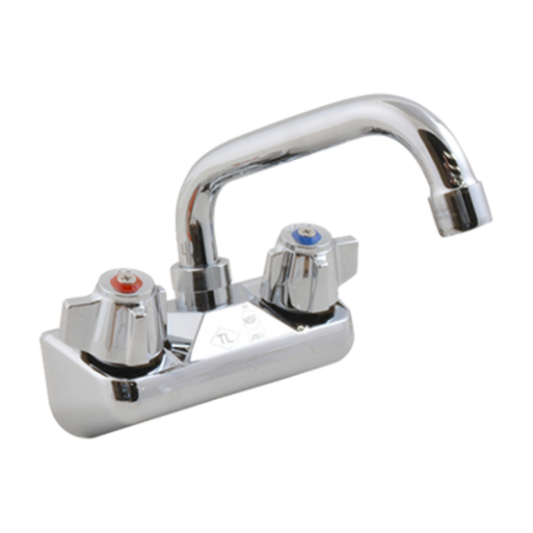 Faucet, wall, 4" centers, 6" spout, 3/4" shank, 1/2" NPS inlet, chrome-plated brass, lead free