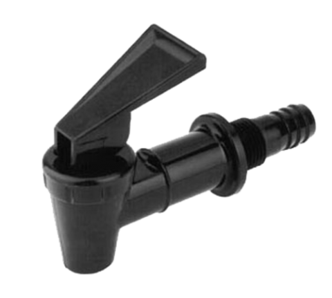 Wine Faucet, hose barb for 1/2" ID tubing & 3/8" NPS x 1/2" thread inlets, plastic
