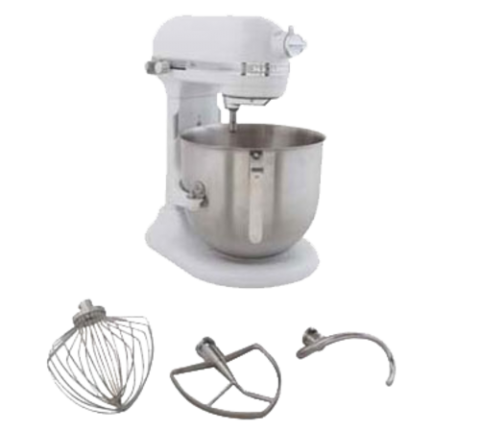 Planetary Mixer, 8 qt. capacity, with attachments, includes 8 qt. bowl, beater, dough hook & wire whip, 10 speed, commercial attachment power hub, 72" power cord, stainless steel, 1/3HP, 120v, 0.5 kW