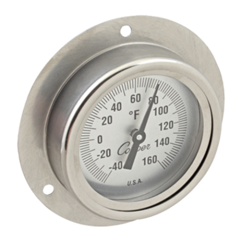 Refrigerator/Freezer Thermometer, 2" dial, 3-1/2" flange, 6" stem, temperature range -40° to 160° F (fahrenheit scale only)