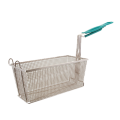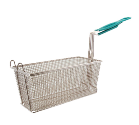 Fry Basket, twin, 13-1/4" x 6-1/2" x 6" H, rectangular, front hook, nickel plated, E-Z Grip® teal vinyl coated handle (replacement basket for Cecilware, Keating, Pitco, Southbend, Vulcan Hart & Wolf fryers) (refer to FRY-BASKET CHART PDF for more information)