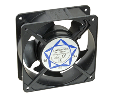 Axial Fan, 4 3/4" H, 4 3/4"W, 1 1/2"D, black, plastic fan blade, steel housing, 120v, 20/19W, 2900 revolutions per minute