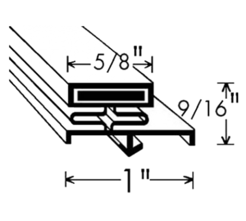 Gasket, magnetic, 9/16" H x 1"W x 8' L, 5/8"W magnet, with dart