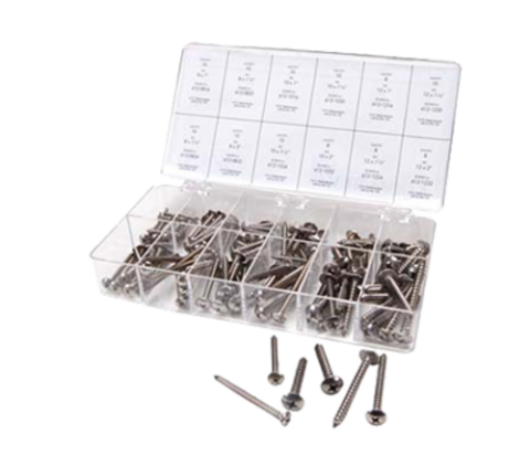 Long Length Sheet Metal Screw Kit, Truss head Phillips head screws, contains (112) screws, stainless steel