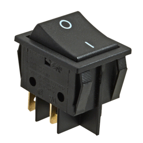 Rocker Switch, on/off switch, DPST, 1/4" tab terminals, plastic, black, 125/250v, 20/16 amp