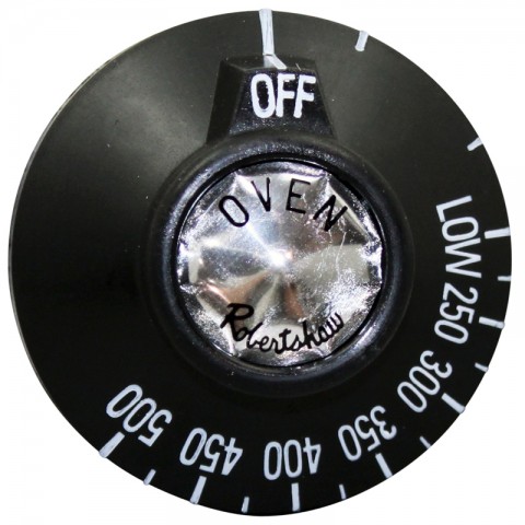 Knob-Bj Oven Fixed Dial, Black, Off 500°-Low, 2-3/8" Dia, 9/16" Protrusion - Notch Up., Fits Vulcan Hart Models~, V24, V260, V36, V36F, V60, V60F, W24, W260, W36, W36F, W60, W60F,
