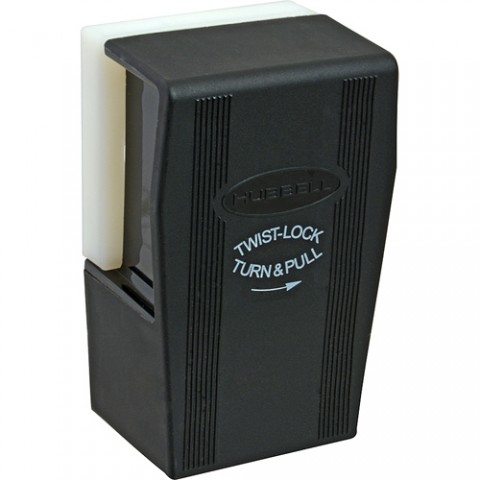 Plug Angle Adaptor, 2-5/8"W x 1-7/8"D x 1-1/2"ID x 4-1/4"H, converts 2"OD twist locking straight plug to 90° angled plug, includes: housing, collar & hardware, plastic, black (replaces FMP 840-2182) (HBL-45WAA, 1D86, 30C95)