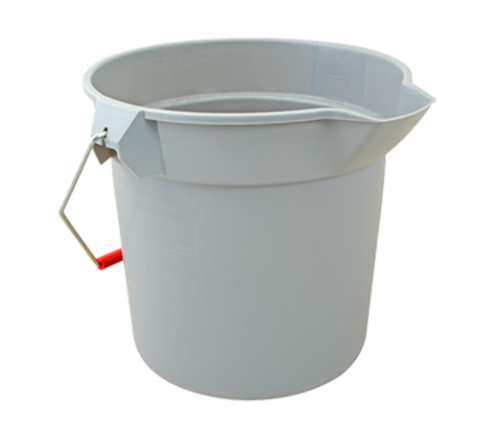 Rubbermaid® Sanitizing Bucket, 10 qt. capacity, 10-1/4" H, 10-3/4" OD, pour spout, plastic, gray, hinged chrome-plated steel handle, Brute®