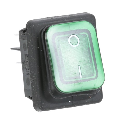 Switch - Rocker, Lighted (Green), (4) 1/4" Tab Terminals, 20A@125Vac, 16A@250Vac,
