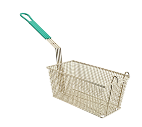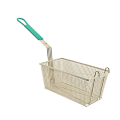Fry Basket, twin, 12-1/8" x 6-5/16" x 5-5/16" H, nickel plated, front hook, teal vinyl handle, steel