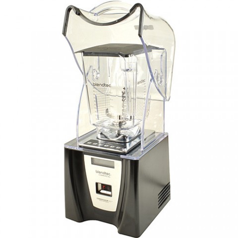 Q Series Blender by Blendtec®, 30 pre-programmable blend cycles with 5 programmable blend cycle buttons and a Pulse function, blue LCD display, stainless steel blade assembly, black plastic base, includes two 3 qt (96 oz) clear polycarbonate jars, sound enclosure, and two lids, 3.8 HP, 120 volt, 15 amp, 1800 watt, ANSI compliant