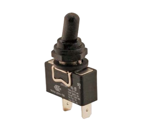 Toggle Switch, off/momentary on, SPST, rubber boot, black, 125/250/277v, 16 amp