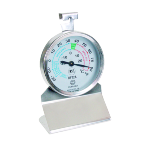 Refrigerator/Freezer Thermometer, 2" dia. round face, -20° to 80° F temperature range, hangs or stands, NSF