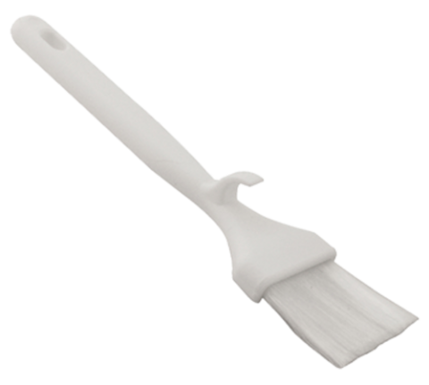 Pastry Brush, 2" wide, flat, molded hook-on handle for hanging, dishwasher safe, nylon bristles, plastic handle, white