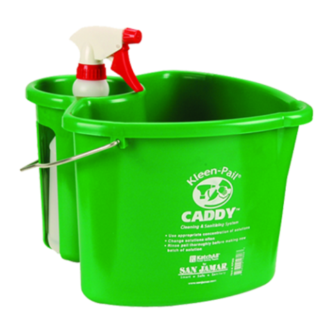 San Jamar® Kleen-Pail® Caddy™, includes 4 quart bucket & spray bottle, plastic, meets HACCP guidelines, green