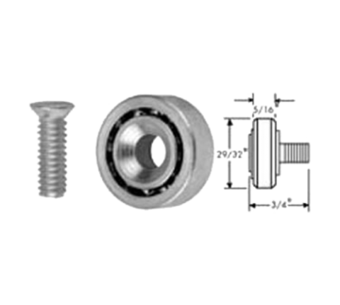 Roller, 1/4" - 20 threaded stud, stainless steel