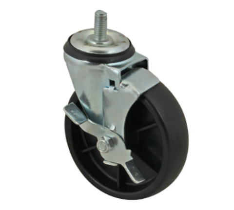 Caster, swivel, 5", with brake, black, polyolefin wheel