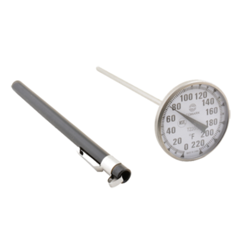 Dial Test Pocket Thermometer, 1-3/4" dial, 5" stem, 0° to 220° F (fahrenheit scale only), can be calibrated, stainless steel with plastic case, NSF
