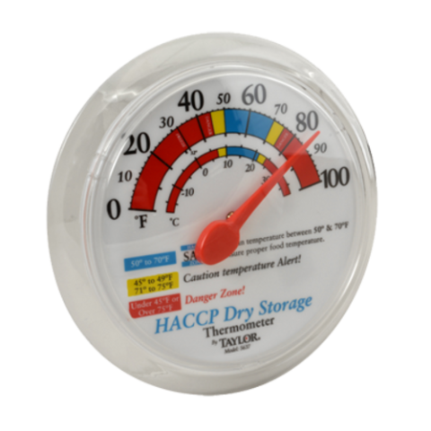 Taylor® Dry Storage Thermometer, wall mount, 6"OD dial, 0° to 100°F (-18° to 38°C) temperature range