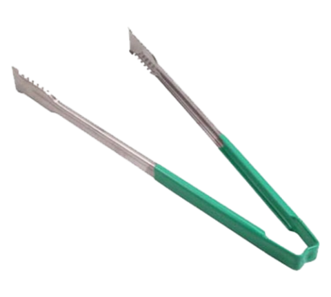 Kool-Touch® Tongs, with VERSAGRIP® paddle, 16", green handle, stainless steel