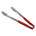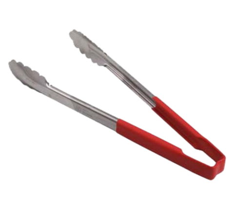 Kool-Touch® Tongs, scalloped paddle, 12", red handle, stainless steel