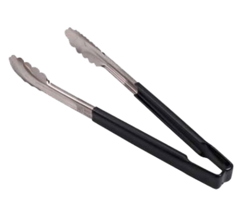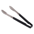 Kool-Touch® Tongs, scalloped paddle, 12", black handle, stainless steel