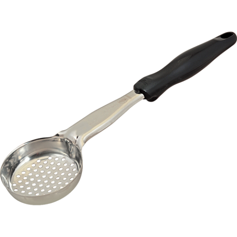 Portion Control Spoon, round, 3 oz, perforated, stainless steel, black handle