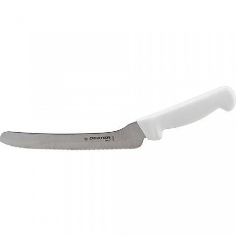 Knife, 8" offset scalloped blade, white handle