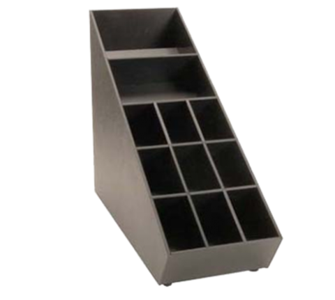 Dispense-Rite® Condiment Organizer, 16-1/2" H x 8"W x 21"D, narrow, removable section dividers, polystyrene, black