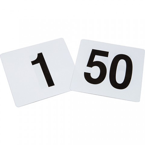 Table Number Set, includes numbers 1-50, 3-3/4" x 4", plastic, white with black imprint