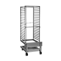 Roll-In Pan Cart, (20) shelf pan trolley (shelves/pans sold separately), 2-9/16" vertical spacing, fits 20-20E, 20-20G, 20-20MW and QC3-100, stainless steel construction, (4) casters (2 locking)