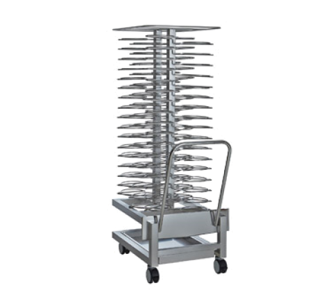 Roll-In Plate Cart, (102) plates capacity, 3" vertical spacing, fits 20-20E, 20-20G, 20-20MW and QC3-100, stainless steel construction, (4) casters (2 locking)