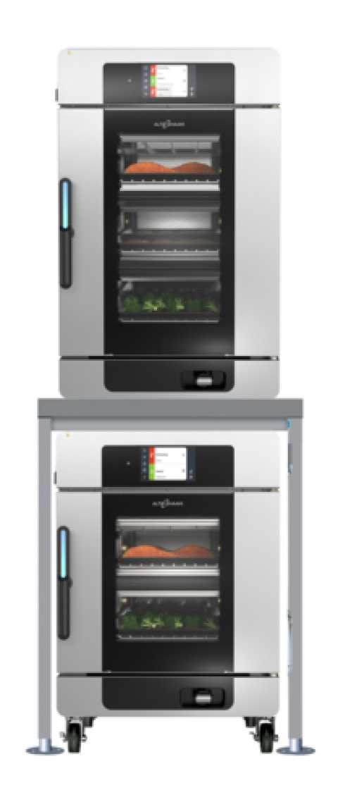 Converge Multi-Cook Oven stacked configuration, up to (5) individually controlled combination cooking chambers in one stacked footprint, (2) ovens and (1) stacking kit with stand included, electric models, holds up to (5) half-size sheet pans or (5) full-size steam pans, programmable touch screen controls with Structured Air Technology, double pane glass door, interior LED chamber lighting, 1 catalyst per chamber and 1 in exhaust manifold, includes: (1) wire rack & (2) jet plates per combination cooking chamber, (1) USB port per oven, stainless steel construction, cULus, IPX 5, UL EPH Classified, city-wide COA for New York City, Made in USA (configure for pricing)