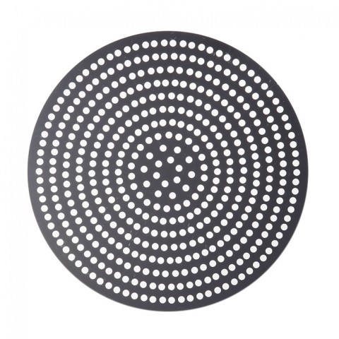 Pizza Disk, 8" dia., perforated, 57 3/8" holes, 18 gauge anodized aluminum, with hard coat, non-returnable made to order item, Made in USA, MOQ of 24 each per case (hand wash only)
