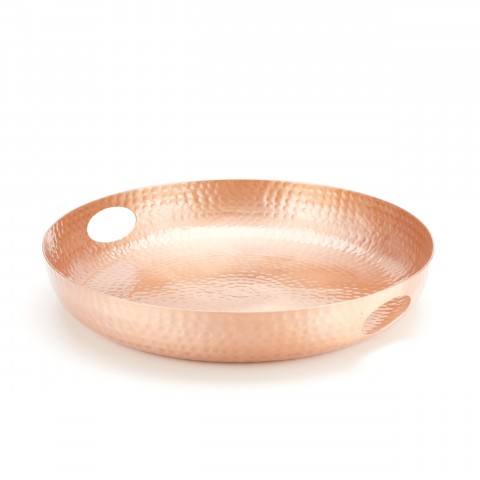 Beverage Tray, 16" dia. x 2-3/4"H, round, hand-wash only, hammered aluminum, copper (hand wash only)