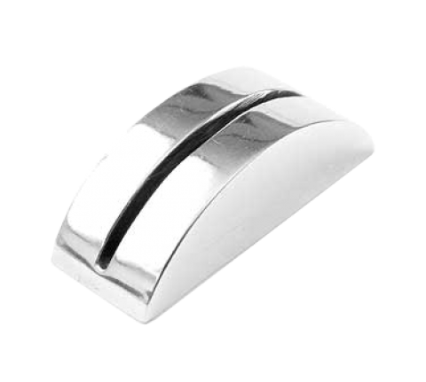 Card Holder, 2-1/8"L x 3/4"W x 3/4"H, half moon style, cast aluminum, polished mirror finish (hand wash only)