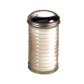 Sugar Pourer/Shaker, 12 oz., 3" dia. x 5-3/8"H, round, fluted, stainless steel self closing side flap top, dishwasher safe, glass, clear