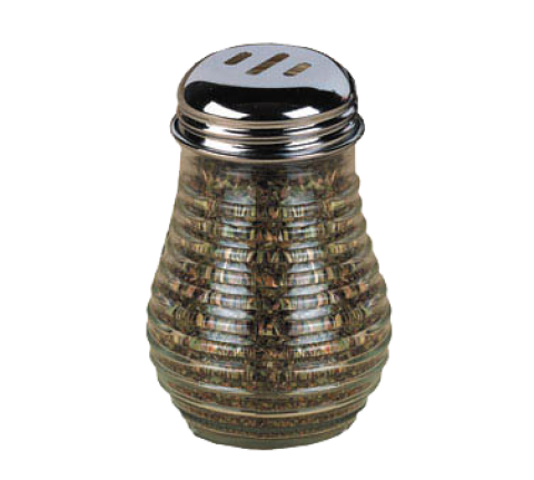 Spice Shaker, 6 oz., 2" dia. x 3-1/2"H, fluted, stainless steel slotted top, glass, clear
